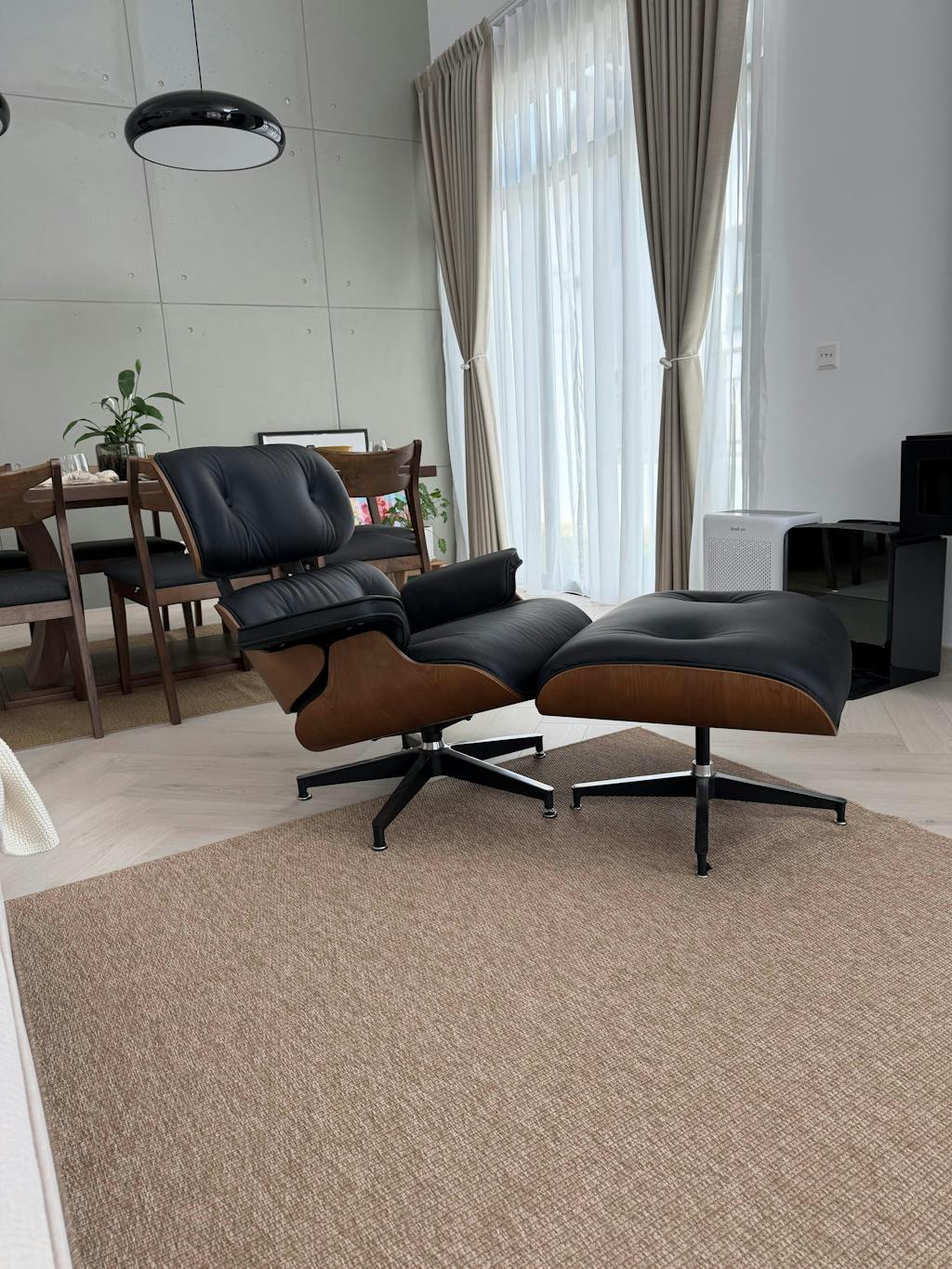 Experience the perfect harmony of luxury and durability with the designer-inspired EMS Lounge Chair and Ottoman. Crafted from premium birch wood and genuine leather, this set blends timeless elegance with enduring quality. The chair's plush cushioning and ergonomic design offer unparalleled comfort, while the matching ottoman provides a seamless lounging experience. Its sculptural base and sleek silhouette make it a standout in any modern living space. Built to last, this iconic piece redefines affordable luxury for the home.